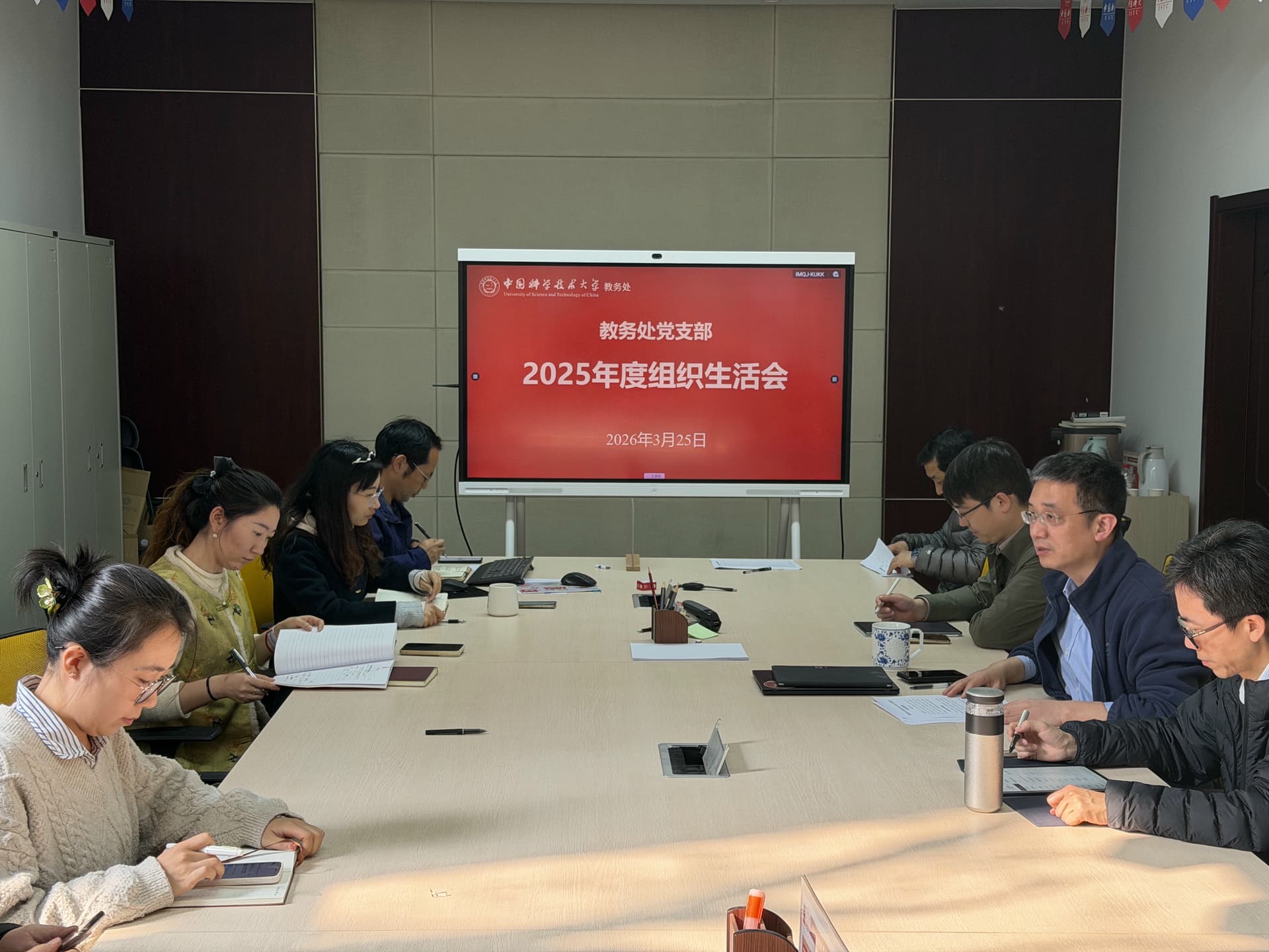 2026年3月25日下午,教务处党支部在老图书馆215会议室组织召开2025年度组织生活会暨民主评议党员会议。本次会议由党支部书记武晓君同志主持,副校长汪毓明同志以普通党员身份参加会议。
